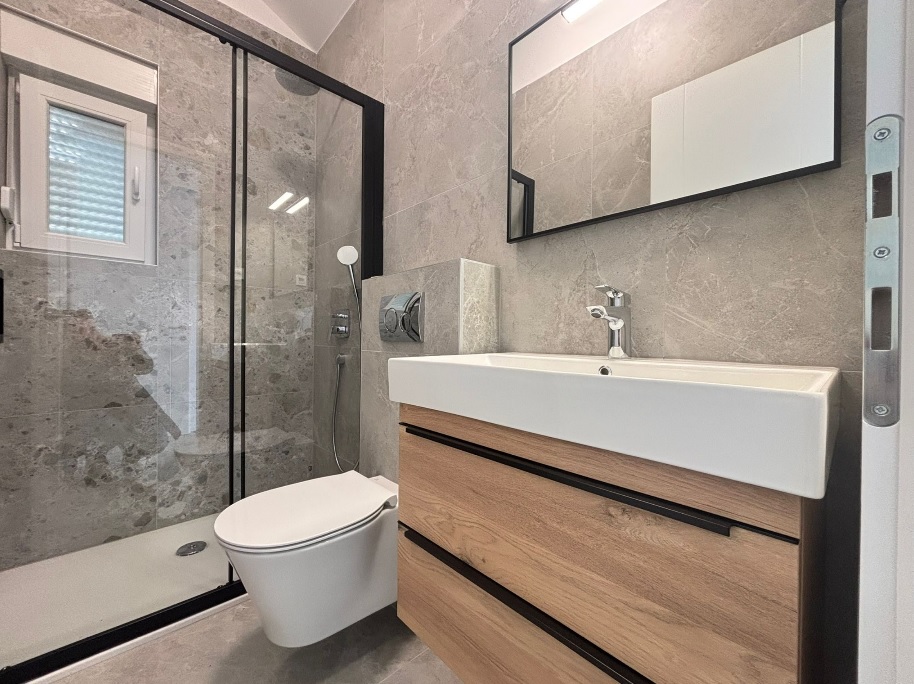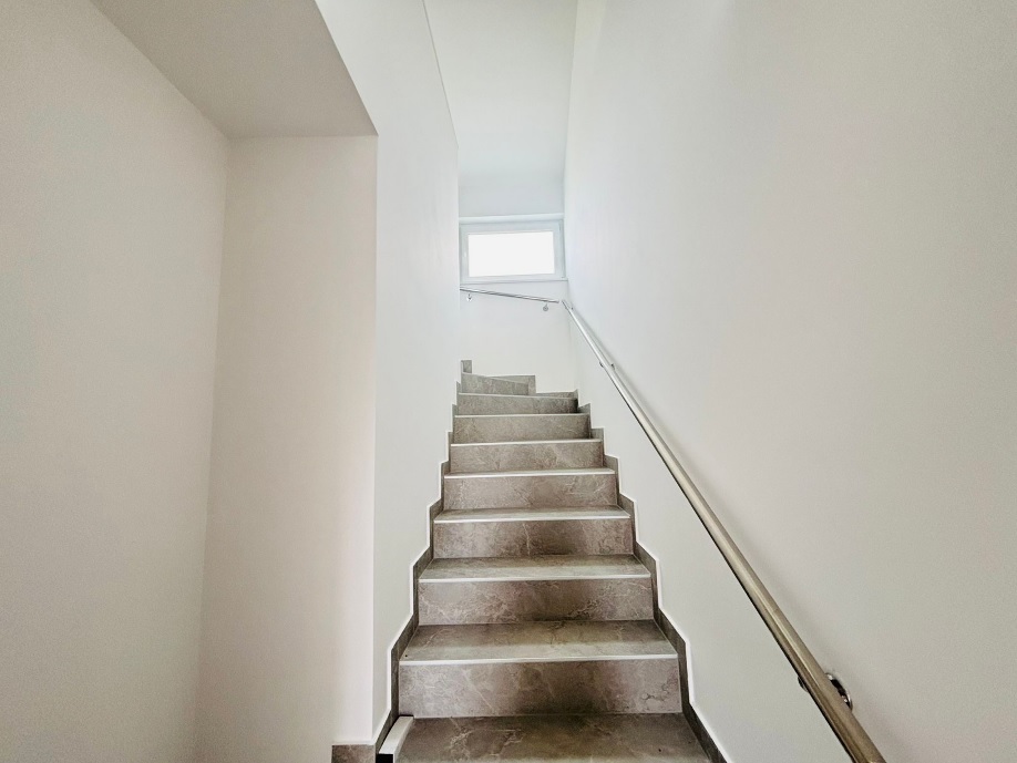 Skladá sa z obývacej izby a kuchyne, chodby, 2 kúpeľní s toaletami, 2 spální, technickej miestnosti, schodiska a 3 terás s výhľadom na more.