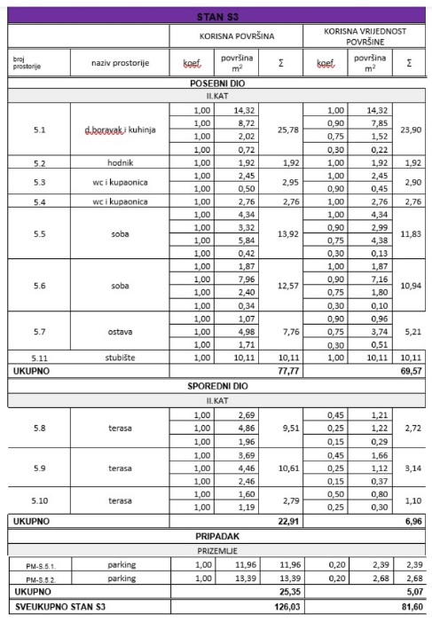 Na predaj je trojizbový penthouse (S3) na druhom poschodí s celkovou rozlohou 81,60 m2 v Škuncin stani nad Gajcom na ostrove Pag.